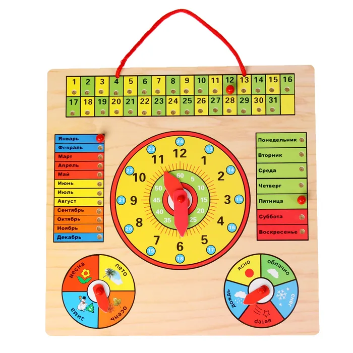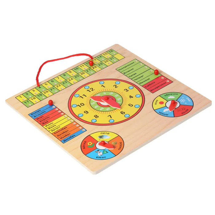 Этот бизиборд помогает ребёнку освоить важные понятия: времена года, дни недели, месяцы и цифры. Интерактивные элементы, такие как стрелки часов и кнопки, стимулируют мелкую моторику и логическое мышление. Ребёнок учится планировать день, отмечать погоду и понимать ход времени. Игра с бизибордом становится не только увлекательной, но и образовательной.
