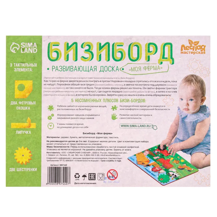 Бизиборд «Моя ферма» 27х20 см — Характеристики