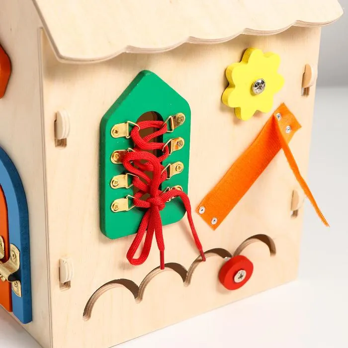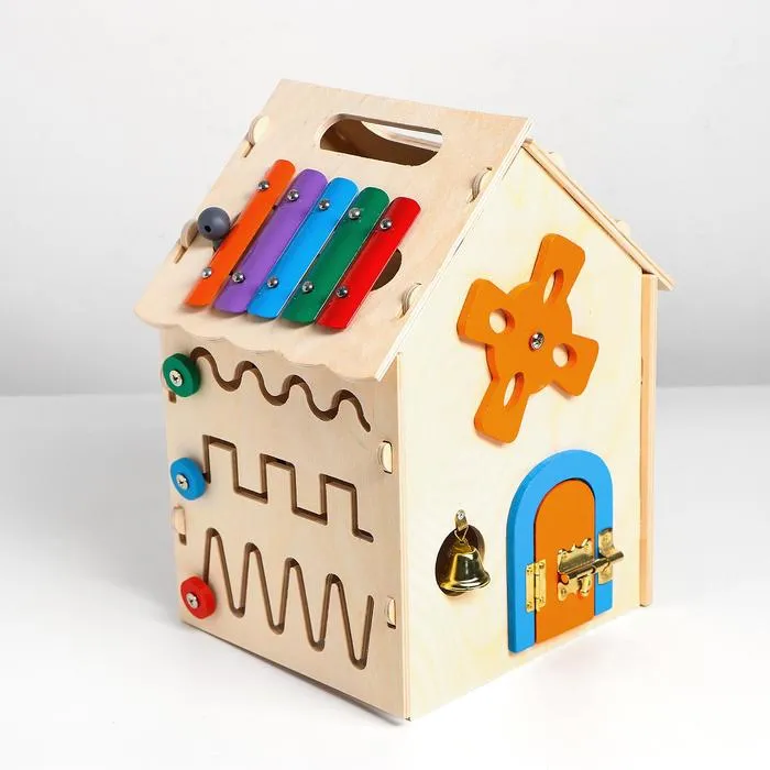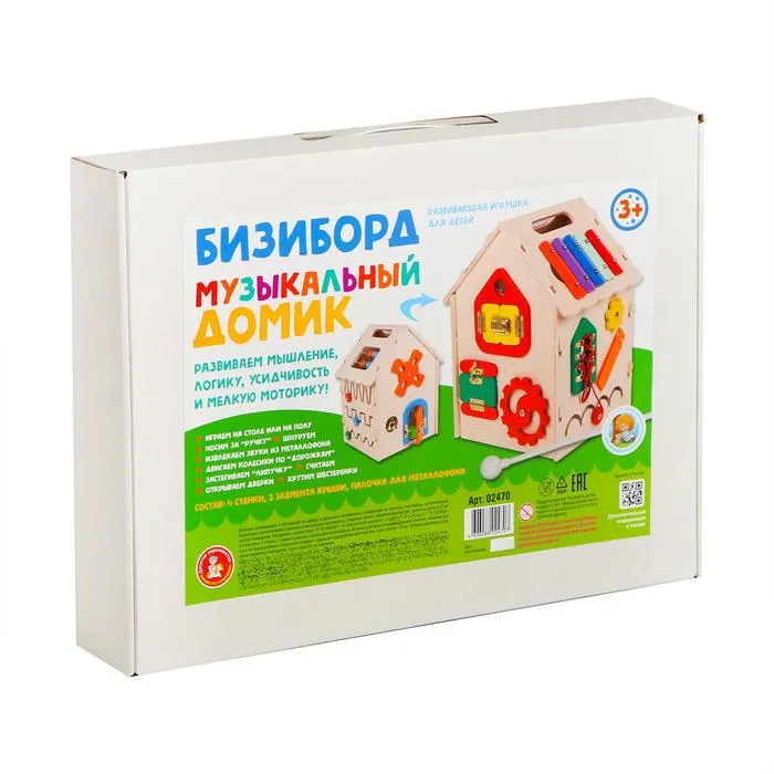 Бизиборд «Музыкальный домик» — игровой центр с деталями, которые можно крутить, открывать, шнуровать и дёргать. Игрушка надолго увлечёт ребёнка, поможет ему исследовать окружающий мир весело и безопасно, а также познакомит с музыкальными звуками и первыми арифметическими действиями.