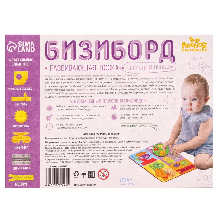 Бизиборд «Овощи, фрукты, ягоды» 27×20 см — Характеристики