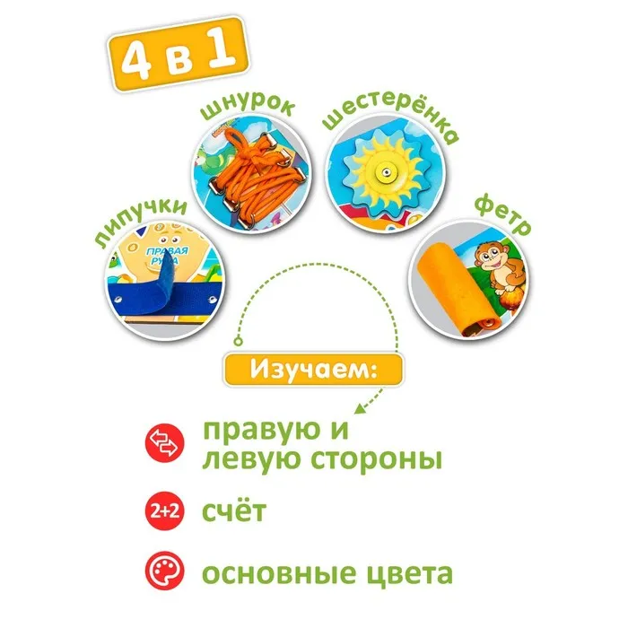 Бизиборд «Право-лево», шнурок в комплекте, МИКС — Характеристики