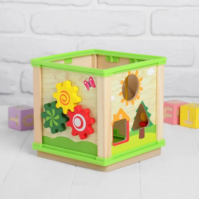 Развивающий куб «Развитие» — это многофункциональная игрушка для детей от 3 лет, выполненная в форме компактного бизикуба. Она сочетает в себе элементы бизиборда и сортера, что делает её универсальной для игр и обучения. Идеально подходит для домашнего использования и занятий в детских садах.
