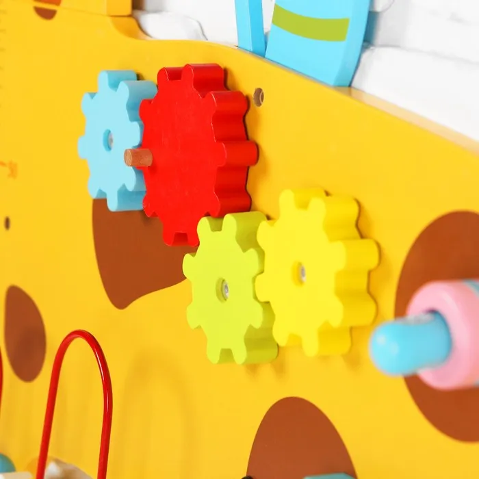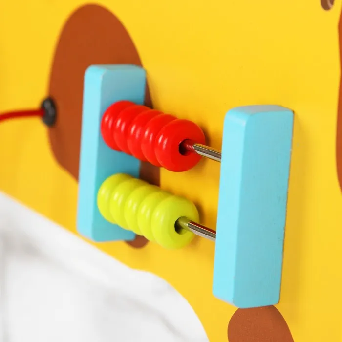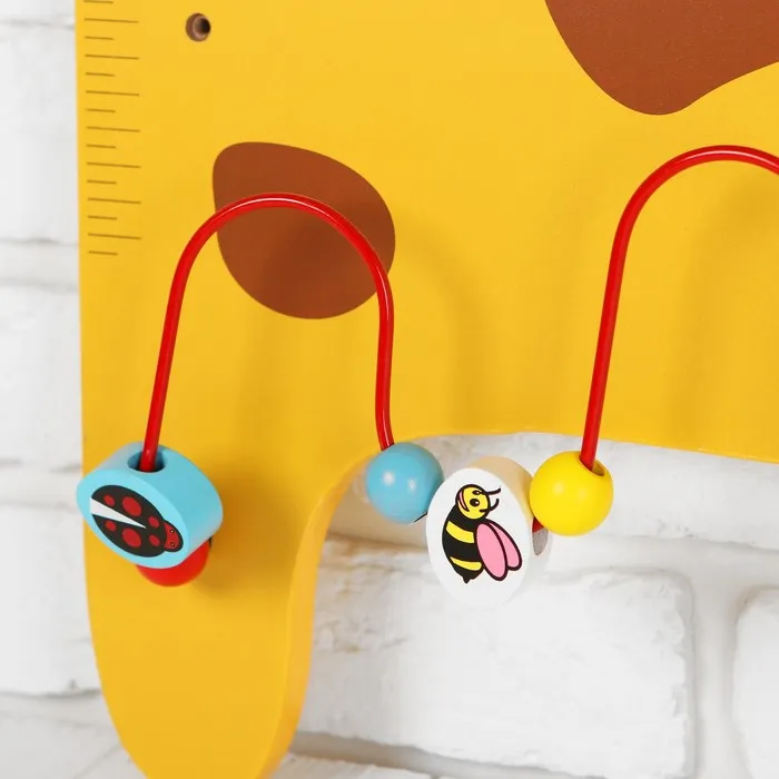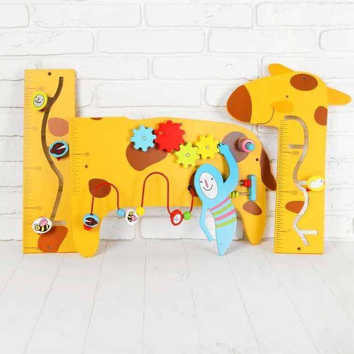 Бизиборд-ростомер помогает ребёнку осваивать важные навыки через игру. Серпантинка и шестерёнки тренируют координацию движений, счёты знакомят с основами математики, а лабиринт развивает логическое мышление. Яркий дизайн в виде жирафа делает процесс обучения увлекательным и интересным. Игрушка также позволяет отслеживать рост ребёнка, что делает её практичной и функциональной.