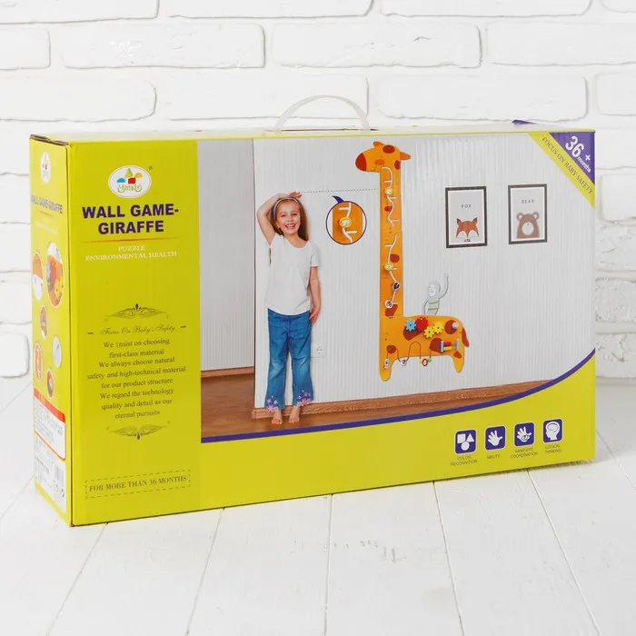 Настенный бизиборд-ростомер «Жираф» — это многофункциональная развивающая игрушка для детей от 3 лет. Выполненный в виде дружелюбного жирафа, он сочетает в себе функции бизиборда и ростомера, что делает его полезным и увлекательным для малышей. Идеально подходит для домашнего обучения и использования в детских садах.