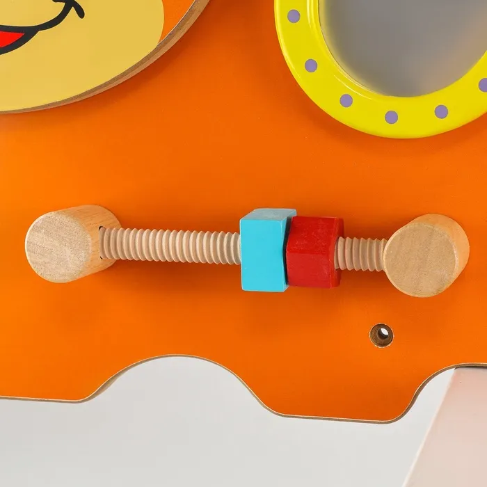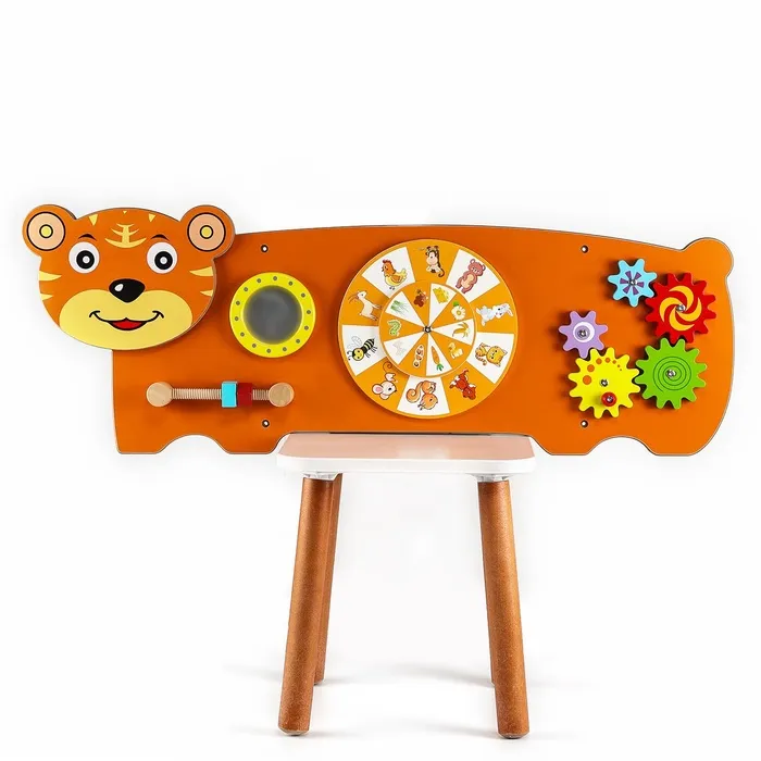 Настенный бизиборд «Тигр» — это многофункциональная развивающая игрушка для детей от 3 лет. Выполненный в форме плоского бизиборда, он сочетает в себе элементы шестерёнок и часов, что делает его универсальным для игр и обучения. Идеально подходит для домашнего использования и занятий в детских садах.