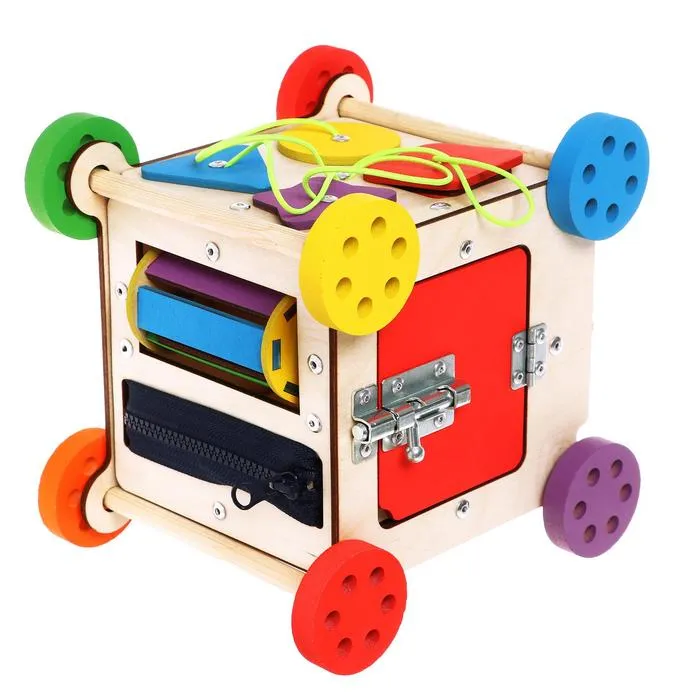 - Многофункциональность. Один бизикуб может заменить до 6 различных игрушек, что экономит ваше время и деньги.
