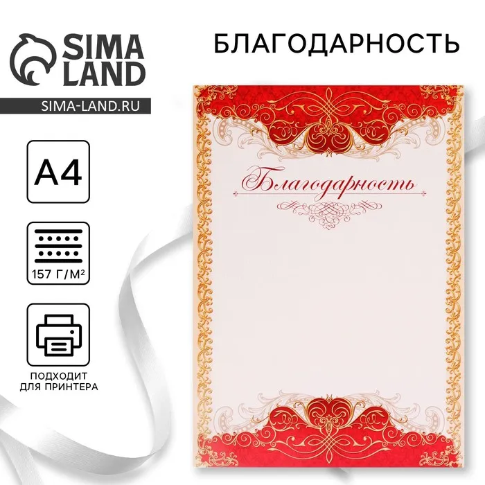 Грамота изготовлена из мелованного картона формата А4. Она станет прекрасной памятной благодарностью и займёт почётное место на стене!