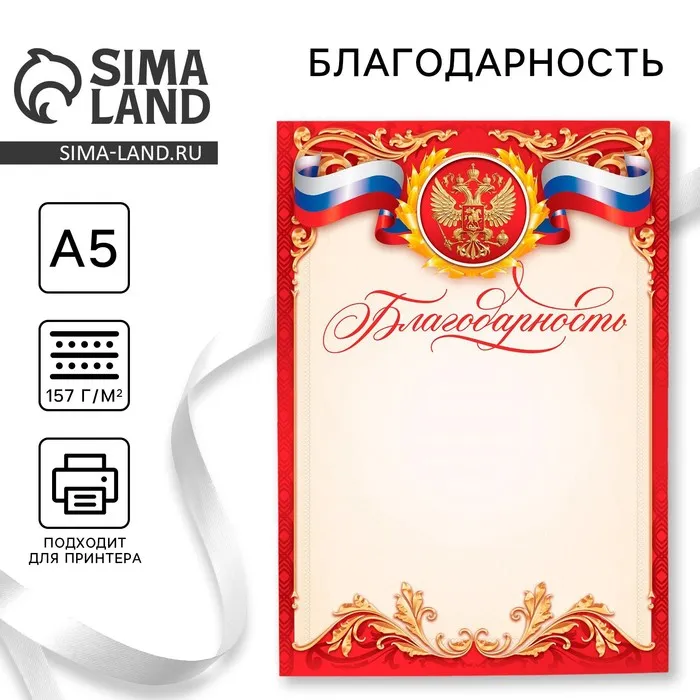 Благодарность А5 символика РФ, 157 гр/кв.м — Характеристики