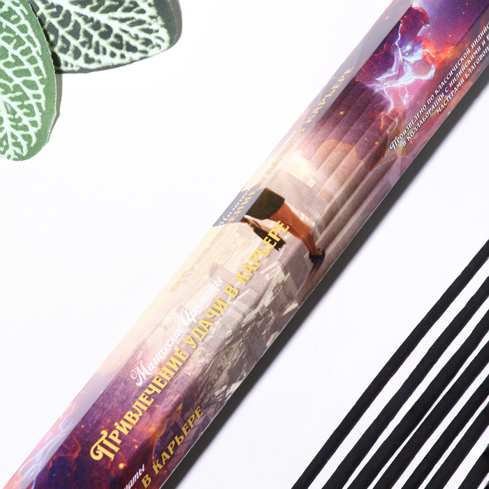 Эти ароматические палочки — ваш невидимый союзник в достижении целей. Древесно-цитрусовая композиция с лёгкими пряными нотами создаёт атмосферу продуктивности, ясности ума и положительного энергетического потока.