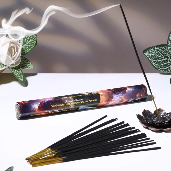 Благовония "Укрепление связи с влиятельными людьми" созданы для тех, кто стремится к карьерному росту и успешным деловым контактам. Шестигранные палочки, изготовленные из отборных смол и специально подобранных трав, помогают привлечь нужные знакомства, укрепить деловые связи и создать благоприятную атмосферу для переговоров.