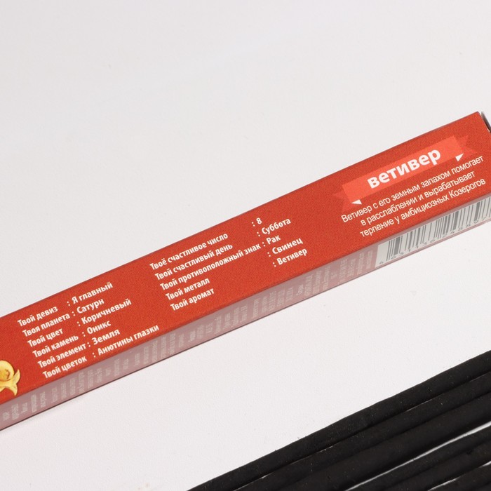 Благовония «Зодиак КОЗЕРОГ», аромат ветивер, 8 палочек — Характеристики