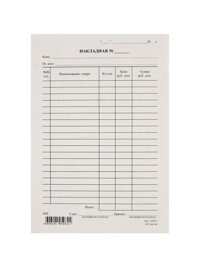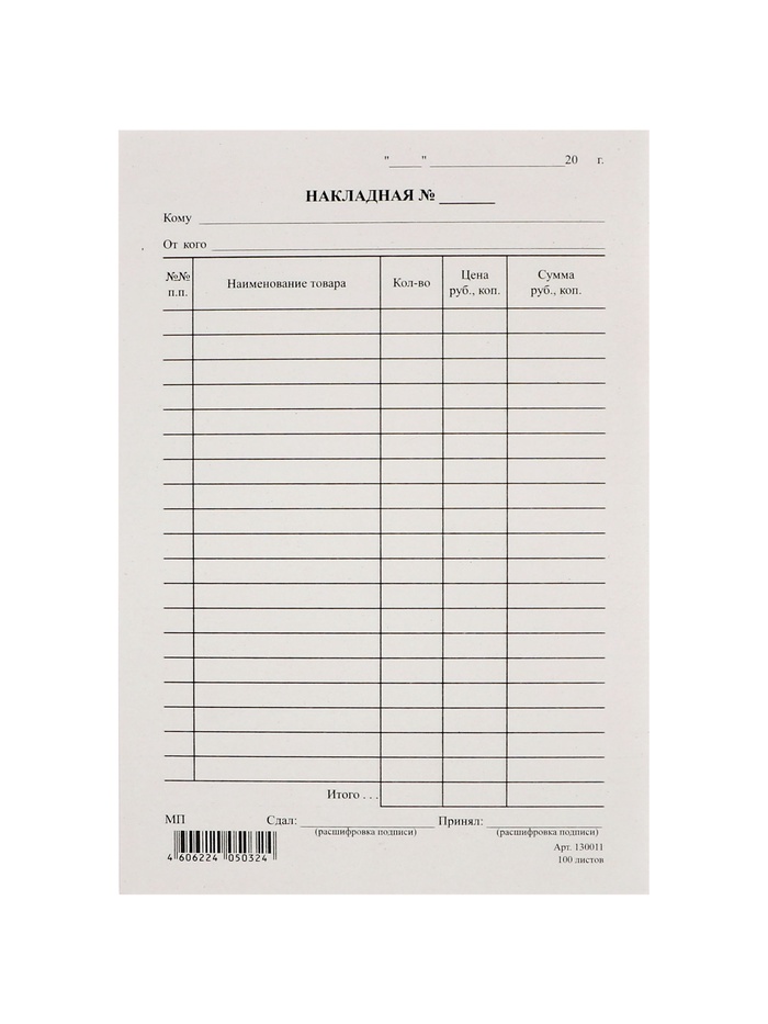 Бланк "Накладная" Calligrata, А5, газетка, 100 экземпляров, в пленке т/у — Характеристики