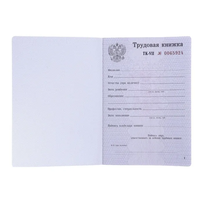 Бланк «Трудовая книжка» без голограммы — Характеристики