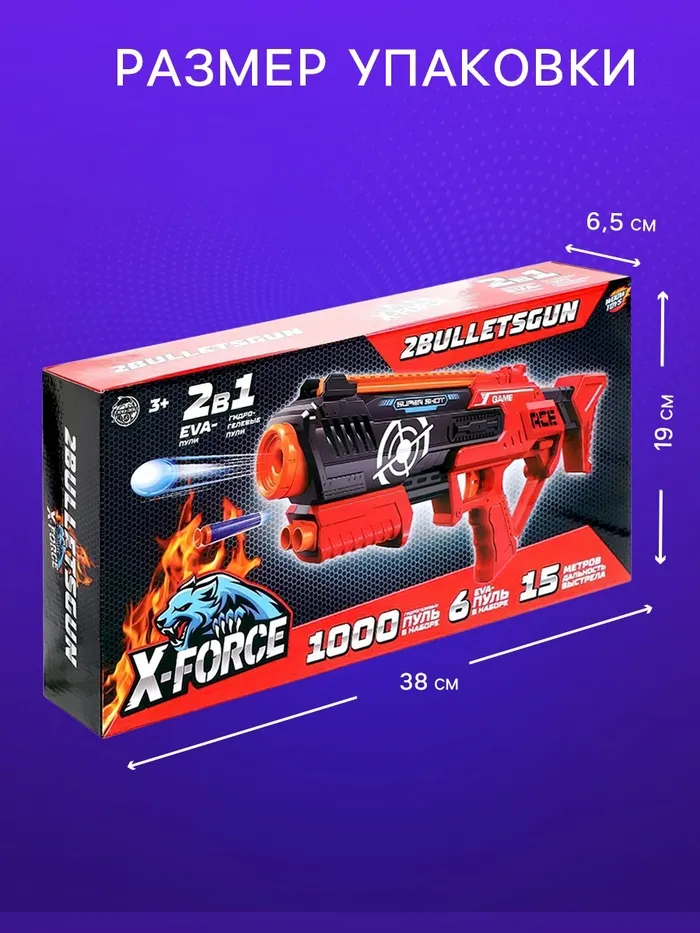 Бластер 2BULLETSGUN, стреляет мягкими и гелевыми пулями — Характеристики