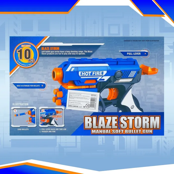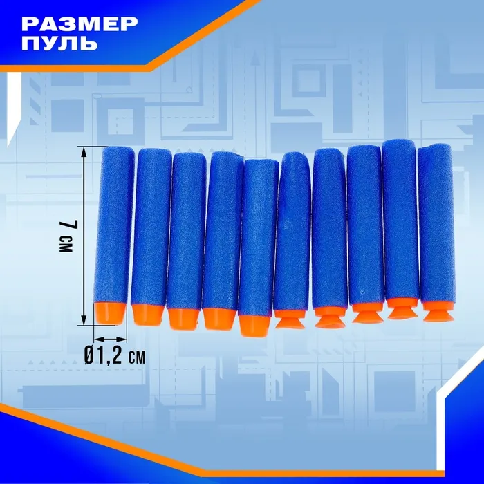 - В комплект входит 10 мягких пуль, что обеспечивает долгую игру без необходимости часто подзаряжать бластер.