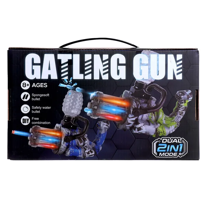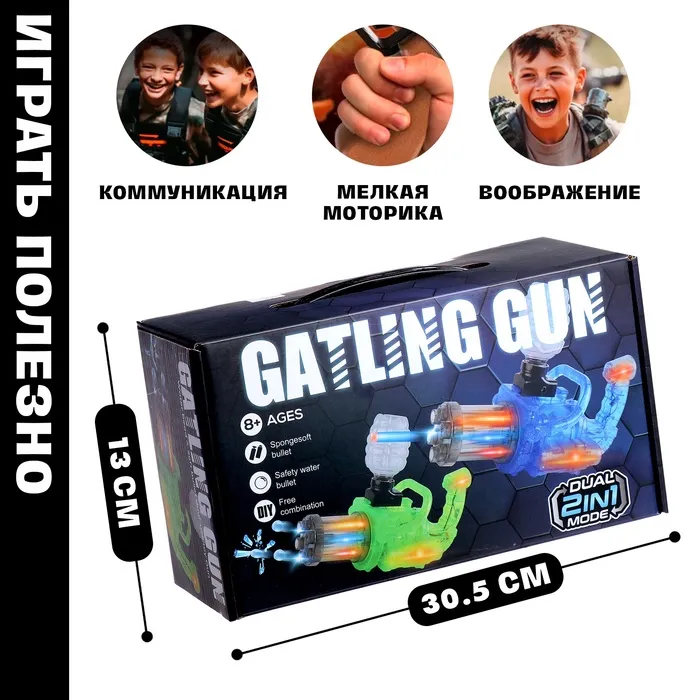 Этот мощный миниган — идеальный подарок для ребёнка, который любит активные игры. Реалистичный дизайн и световые эффекты делают игру захватывающей и увлекательной.