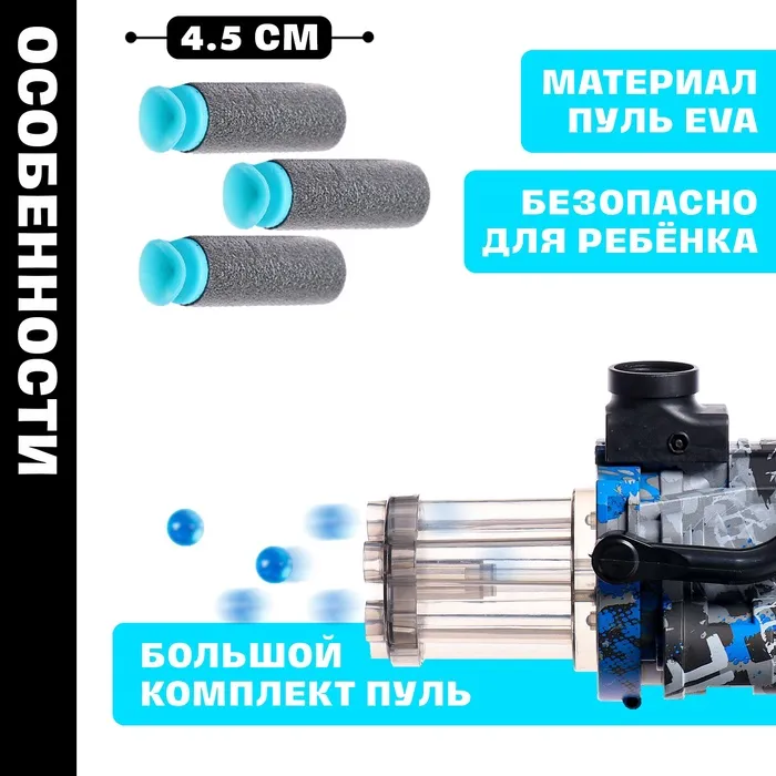 - Стреляет мягкими и гелевыми пулями.