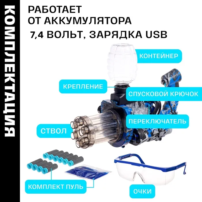 Бластер «Миниган», стреляет мягкими и гелевыми пулями, работает от аккумулятора — Характеристики