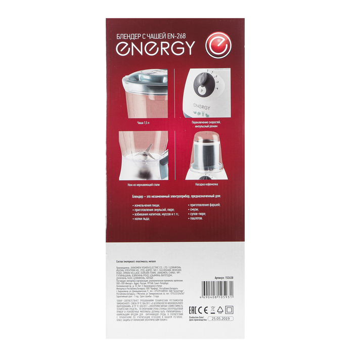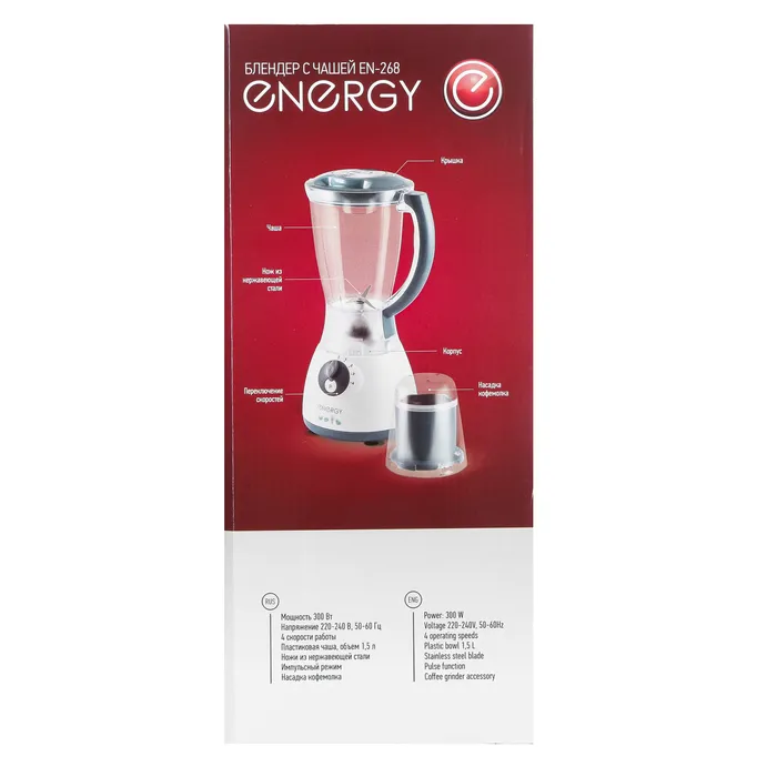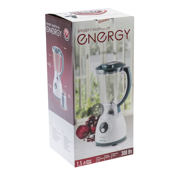 Блендер ENERGY EN-268, стационарный, 300 Вт, 1.5 л, 4 скорости, бело-зелёный — Характеристики