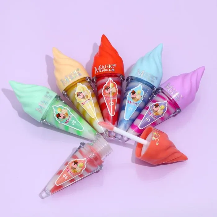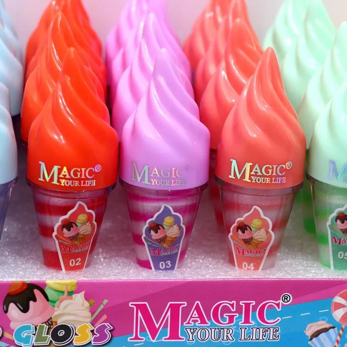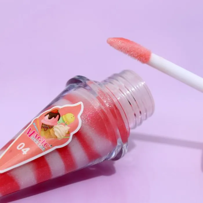 Блеск для губ в упаковке в виде маленького мороженого обладает нежной, тающей текстурой и насыщенным оттенком, который заметно освежает лицо и придаёт губам яркость и выразительность. Он ухаживает за нежной кожей губ, насыщая её необходимыми минералами и витаминами.