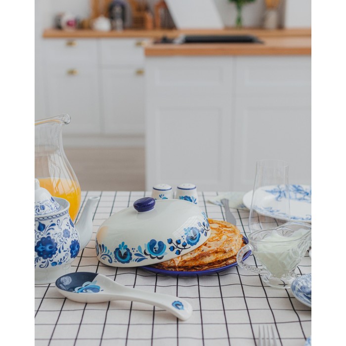 Блюдо для блинов Доляна изготовлено из доломитовой керамики высокого качества и украшено красивым рисунком. Изделие оснащено крышкой и предназначено для сохранения температуры блинов перед подачей на стол. Такое блюдо понравится любителям яркого оригинального дизайна и станет неотъемлемым атрибутом. Блюдо упаковано в индивидуальную коробку.