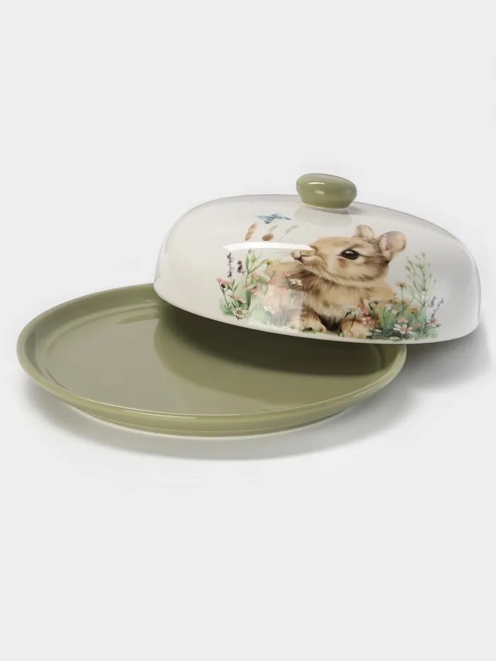 Крышка, изготовленная из качественного доломита, она обеспечивает равномерное прогревание и сохранение тепла и аромата свежеиспеченных блинов. Стильный рисунок в виде зайца добавляет игривости и уюта.