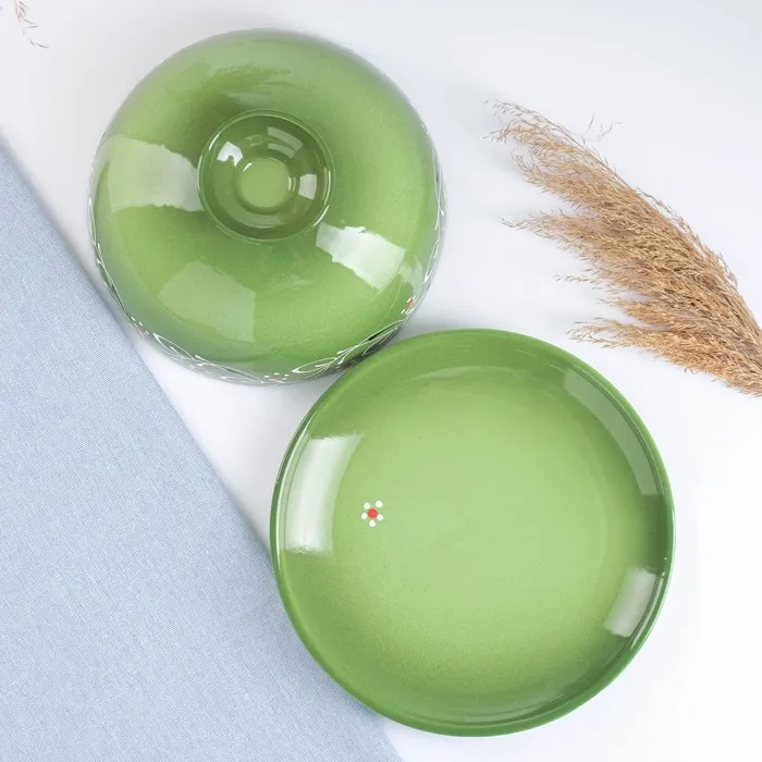 Блинница Риштанская Керамика "Цветы", 24 см, красный