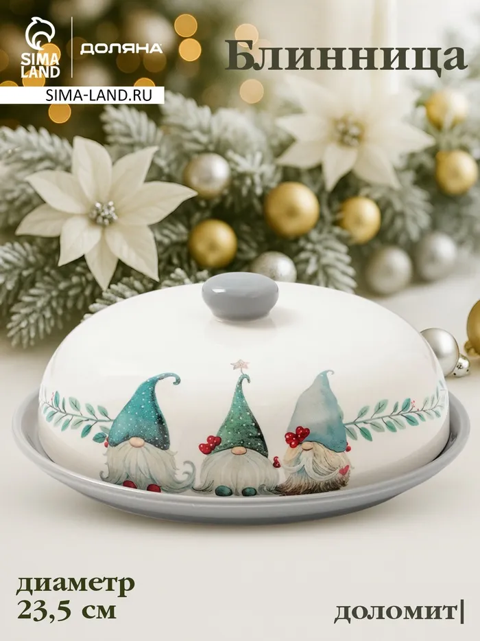 Блинница новогодняя Доляна «Домашние гномики», 23.5×9.7 см, доломит, белая — Характеристики