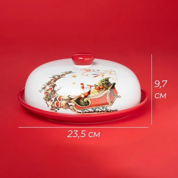 Блинница новогодняя Доляна «Сани Деда Мороза», d=23 см, керамика, цвет белый — Характеристики