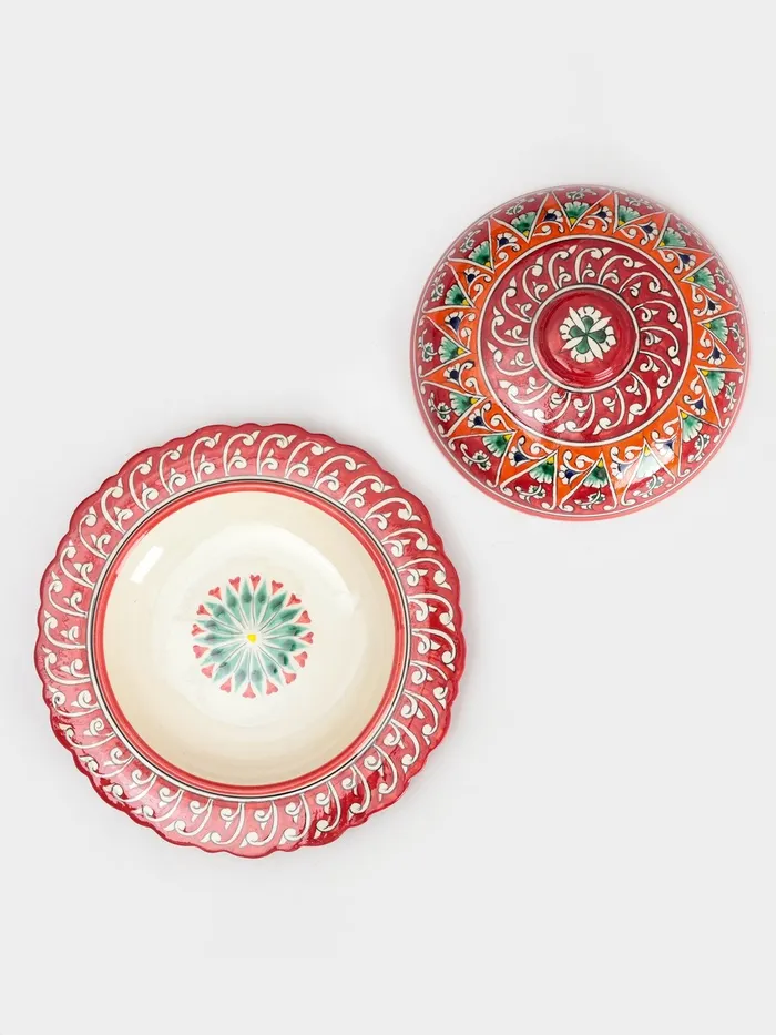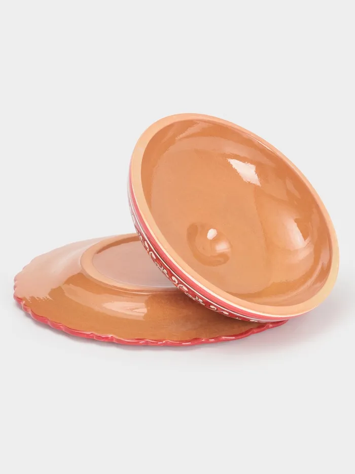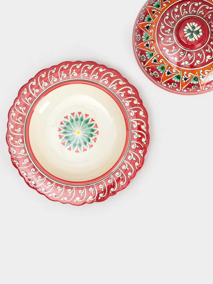 Блинница Риштанская Керамика "Цветы", 24 см, красный