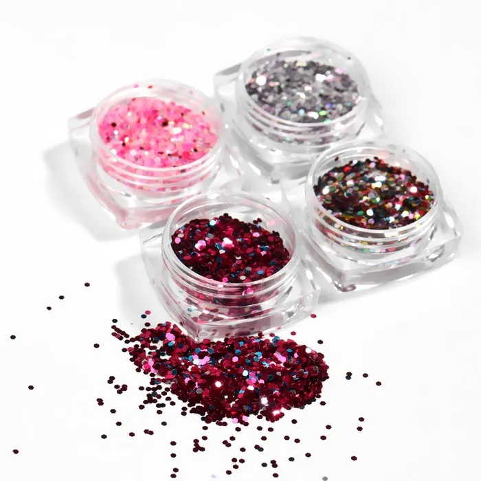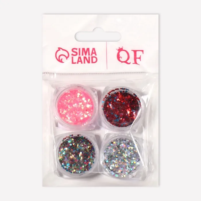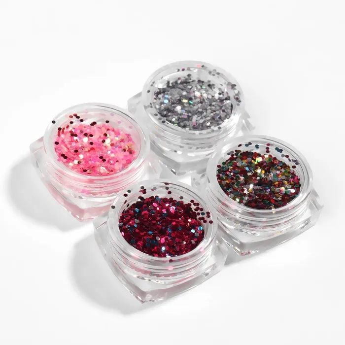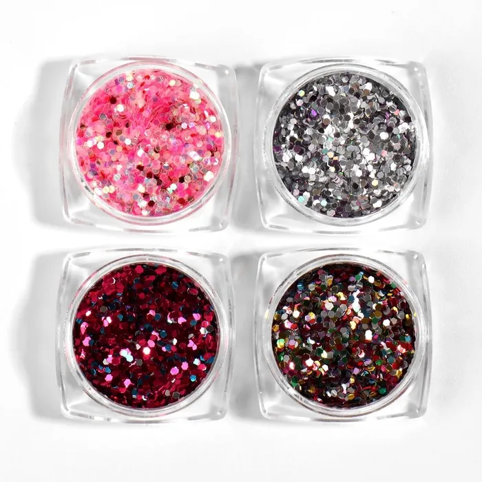 Блёстки для декора, крупные/мелкие, набор 4 баночки, разноцветные — Характеристики