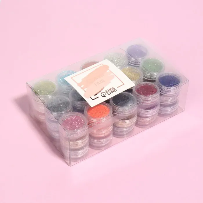 Блёстки для декора ногтей, мелкие, 45 баночек, в ПВХ - коробке, разноцветные — Характеристики