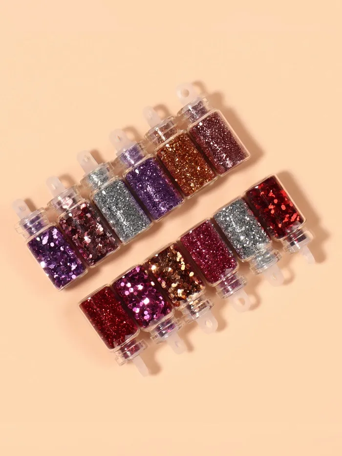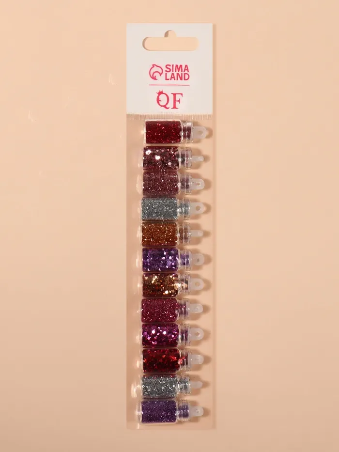 Блёстки для декора ногтей «Розовое настроение», набор 12 бутылочек, средние/мелкие, разноцветные — Характеристики