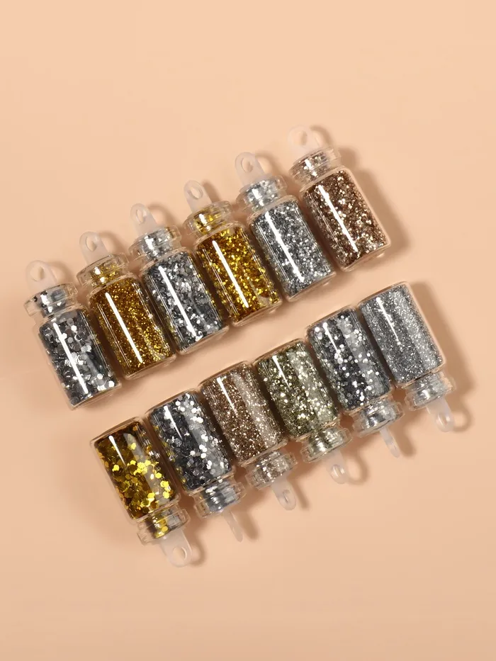 Блёстки для декора ногтей «Звездопад», 12 бутылочек, мелкие/средние/крупные, разноцветные — Характеристики