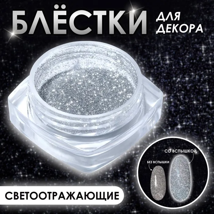 Блёстки для декора, разноразмерные, цвет серебристый — Характеристики