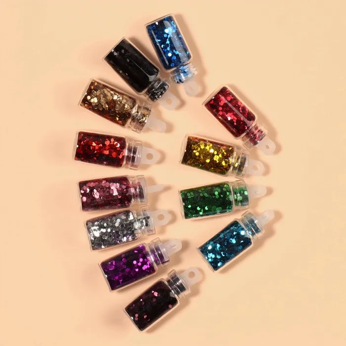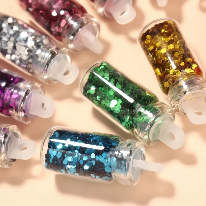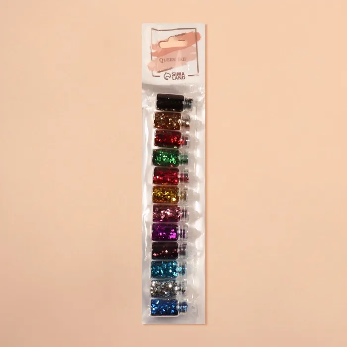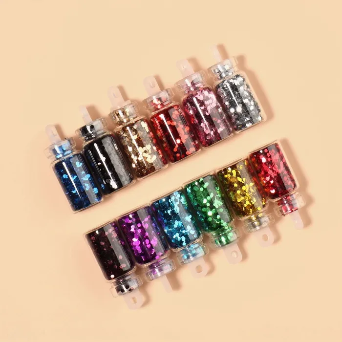 Блёстки для декора «Сияние», набор 12 бутылочек, средние, разноцветные — Характеристики