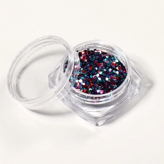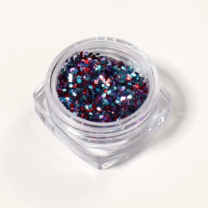 Идеально подойдут для дизайна маникюра, а также Вы можете добавить в сухой глиттер любимый крем или гель, чтобы с лёгкостью наносить его на лицо, тело или волосы. Распределите уже жидкий состав с помощью пальца или кисточки. Блёстки быстро зафиксируются на коже или волосах до конца дня. Глиттер станет отличным дополнением к вечернему образу и выделит вас на любом мероприятии.