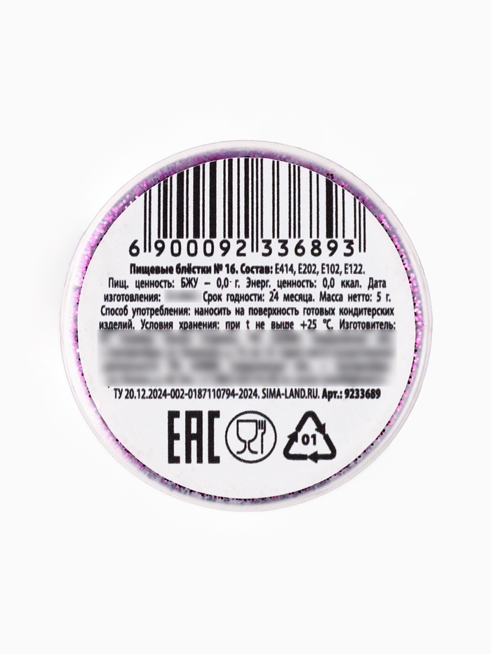 Блёстки пищевые крупной фракции фиолетовые для капкейков, тортов и напитков, 5 г. — Характеристики