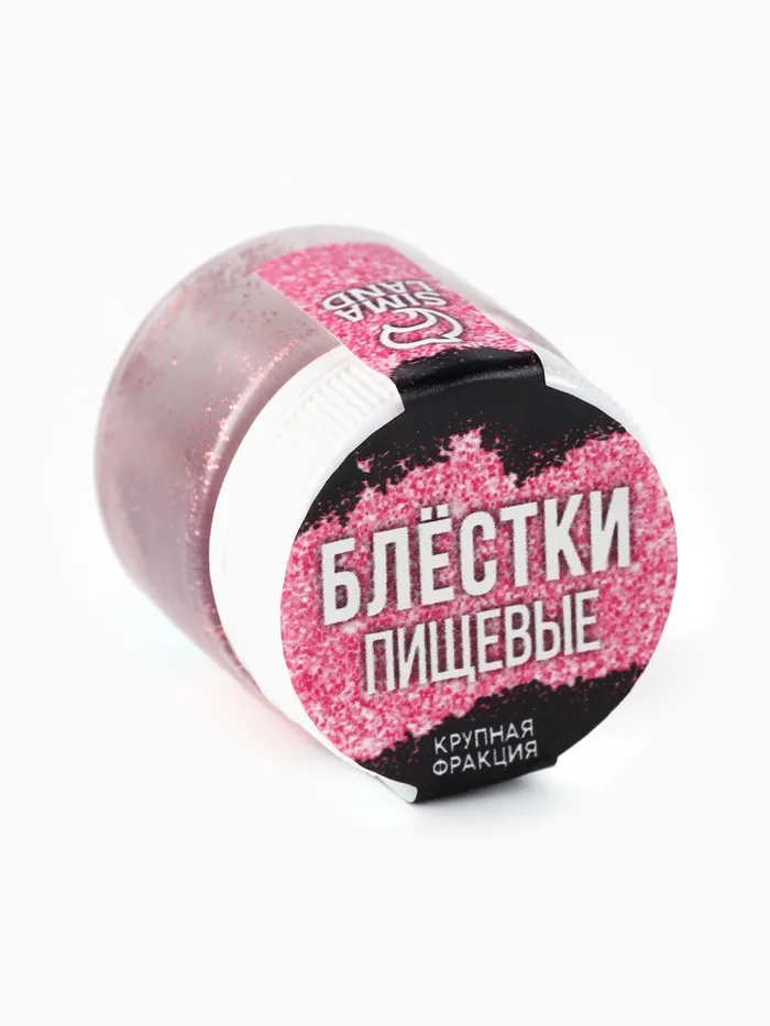 Блёстки пищевые крупной фракции ярко-розовые для капкейков, тортов и напитков, 5 г.