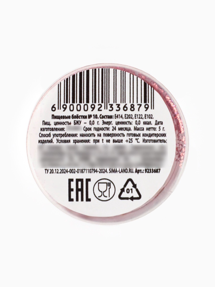 Блёстки пищевые крупной фракции ярко-розовые для капкейков, тортов и напитков, 5 г. — Характеристики