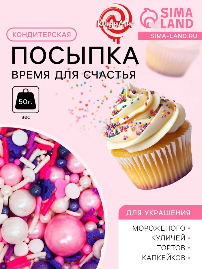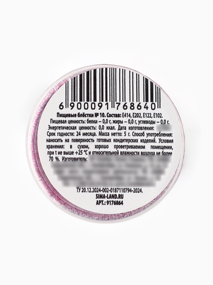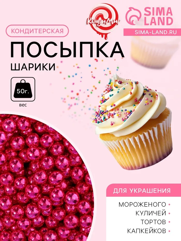 Блёстки пищевые мелкой фракции розовые для капкейков, тортов и напитков, 5 г. — Характеристики