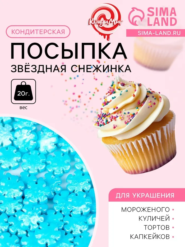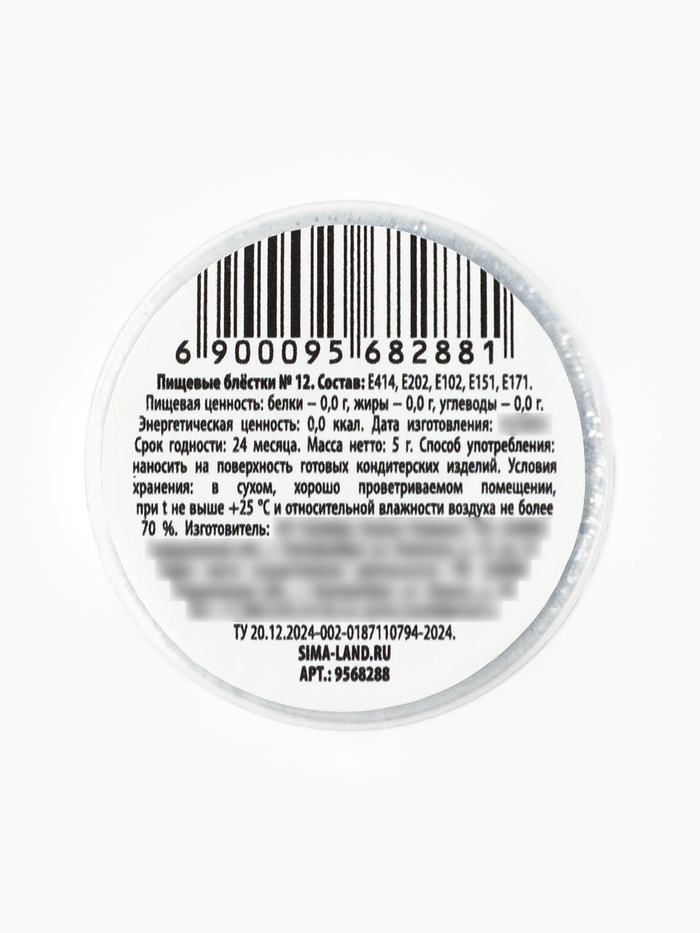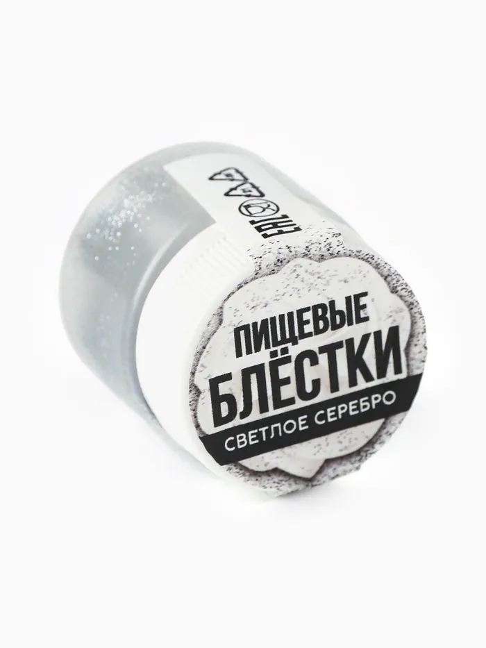 Блёстки пищевые мелкой фракции светло-серебряные для капкейков, тортов и напитков, 5 г. — Характеристики