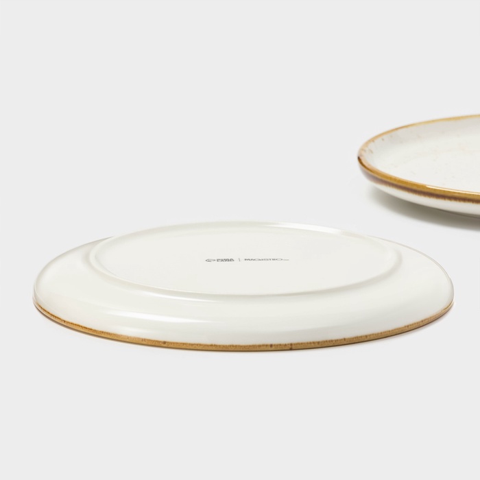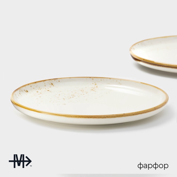 Круглые подносные блюда «Церера» от Magistro — белые фарфоровые тарелки диаметром 20 см с точечным рисунком для элегантной подачи закусок, десертов или гарниров. Их размер удобен для сервировки как одного блюда, так и композиции из нескольких элементов. Гладкая глазурованная поверхность с деколью в крапинку сохраняет свежесть внешнего вида даже при ежедневном использовании, а фарфор выдерживает нагрев в СВЧ и мытьё в посудомоечной машине.
