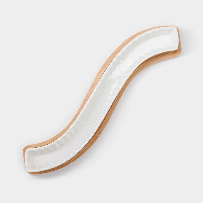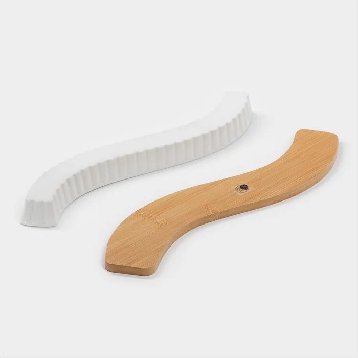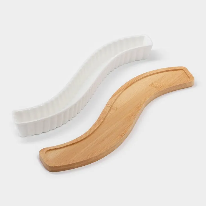 Блюдо BellaTenero, 35×4×3 см, для оливок на деревянной подставке, фарфор, белое — Характеристики