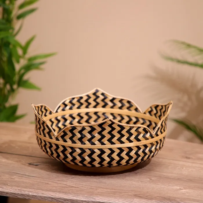 Фактурное блюдо можно использовать не только для интересной подачи сухих закусок, свежих фруктов и овощей, но и в качестве декоративного элемента в интерьере. Например, разместить изделие на открытой полке, закрепить на стене или комоде. Плоская чаша подойдёт для хранения хозяйственных мелочей и бижутерии.