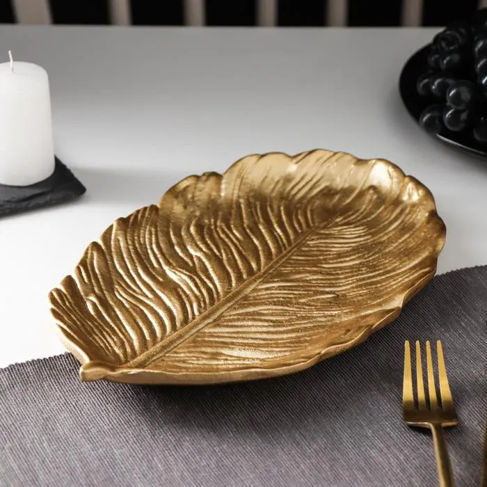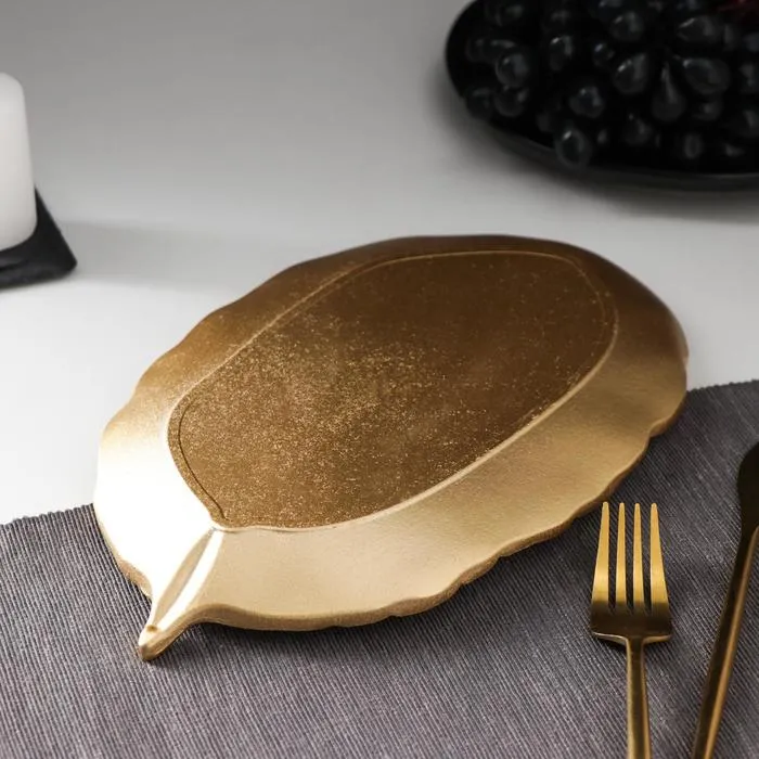 Блюдо для фруктов Доляна «Лист», 30×18×2 см, золотое — Характеристики