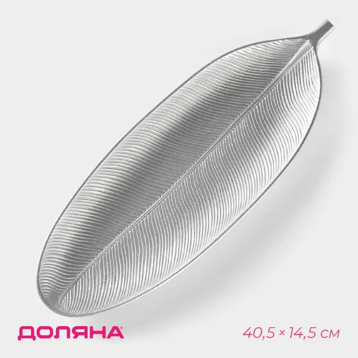 Блюдо для фруктов Доляна «Тропический лист», 40,5×14,5 см, цвет серебристый — Характеристики