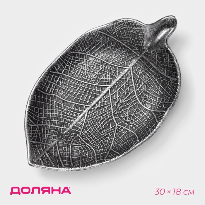 Блюдо для фруктов Доляна «Винтажный лист», 30×18×4 см, серое — Характеристики