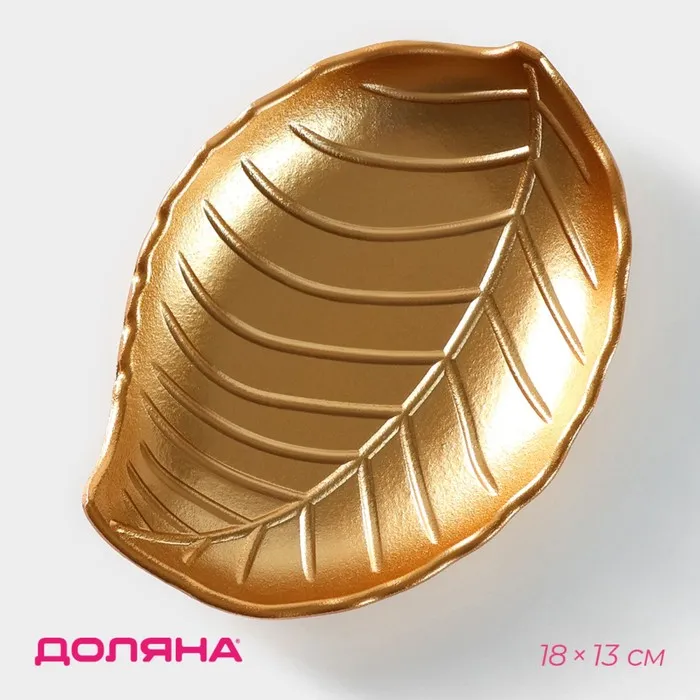 Блюдо для фруктов Доляна «Золотой лист», 18×13 см, золотое — Характеристики