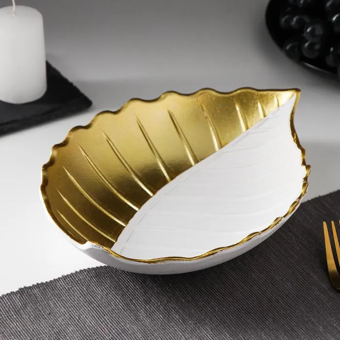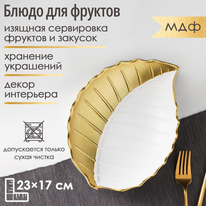 Блюдо для фруктов Доляна «Золотой лист», 23×17×4,5 см, цвет золотой с белым — Характеристики